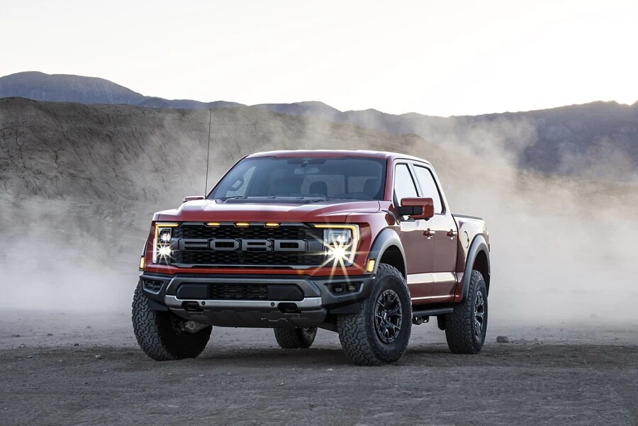 When the road diverges, a true off-roader goes right down the middle. The 2022 F-150® Raptor® is equipped to take on punishing terrain that would be off-limits to a conventional four-wheel-drive pickup. * FOX™ shocks with Live Valve technology are the largest-ever shocks on Raptor®. The internal bypass technology features an electronic solenoid valve that provides active damping. Plus, the Raptor® is available with massive 37-inch BFGoodrich® All Terrain T/A® KO2 tires.